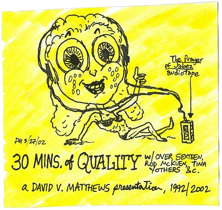 30 Mins. of Quality 30 Mins. of Quality, March 27, 2002. Ink and marker on paper, 4.5″ x 3″. From DVM’s private collection. Share this: Click to share on X (Opens in new window) X Click to share on Facebook (Opens in new window) Facebook Like Loading...
