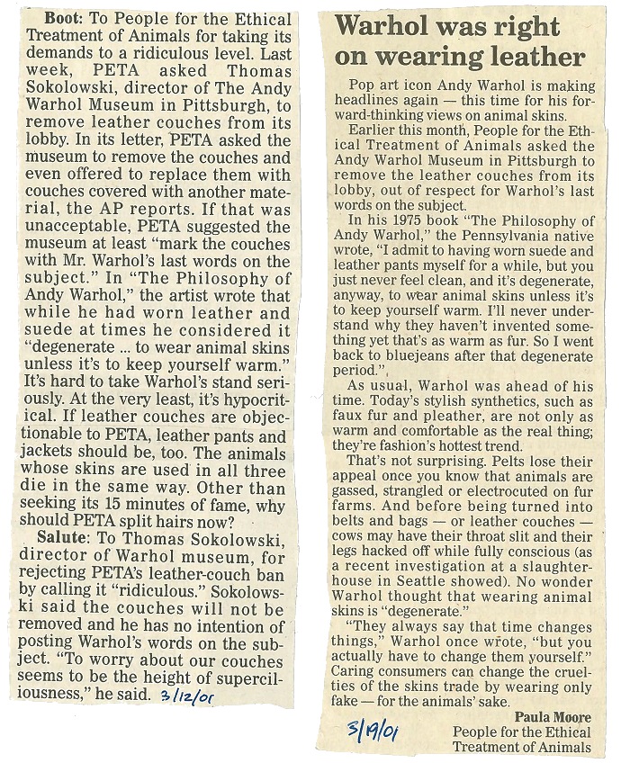 From the Beaver County Times. L-R: the editorial board’s weekly (and witless) Salutes & Boots feature, March 12, 2001; and a letter, March 19, 2001.