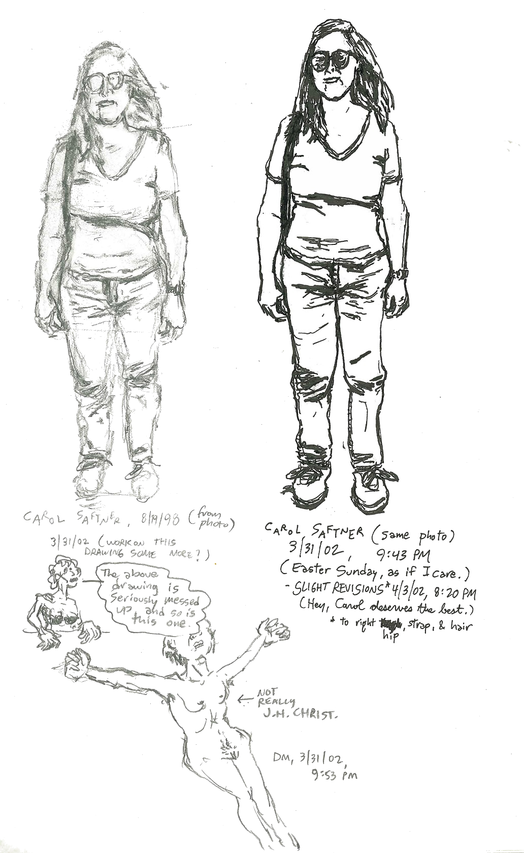Carol Saftner &c. Carol Saftner &c., August 19, 1998/March 31, 2002. Ink and pencil on paper, x x x. Share this: Click to share on X (Opens in new window) X Click to share on Facebook (Opens in new window) Facebook Like Loading...