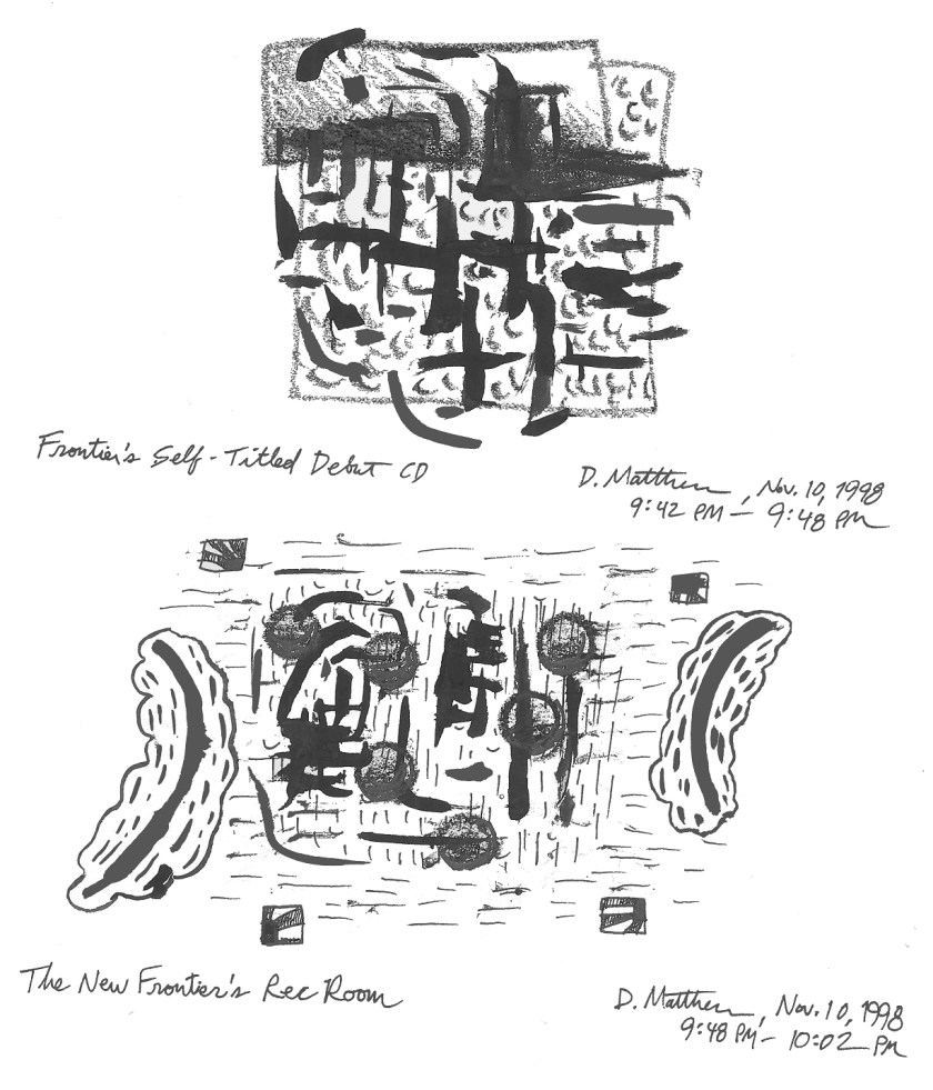Frontier’s Self-Titled Debut CD &c. Frontier’s Self-Titled Debut CD &c., November 10, 1998. Ink and lithographic crayon on paper, x x x . Share this: Click to share on X (Opens in new window) X Click to share on Facebook (Opens in new window) Facebook Like Loading...