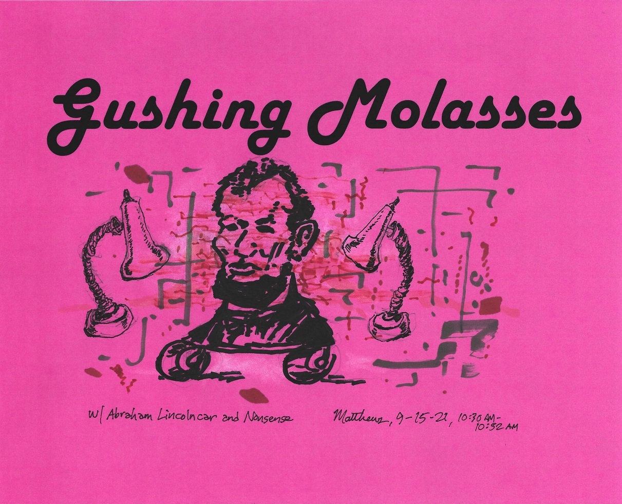 Gushing Molasses w/ Abraham Lincolncar and Nonsense Gushing Molasses w/ Abraham Lincolncar and Nonsense, September 15, 2021. Pencil, marker, and digital on paper, 8″ x 10″. Share this: Click to share on X (Opens in new window) X Click to share on Facebook (Opens in new window) Facebook Like Loading...