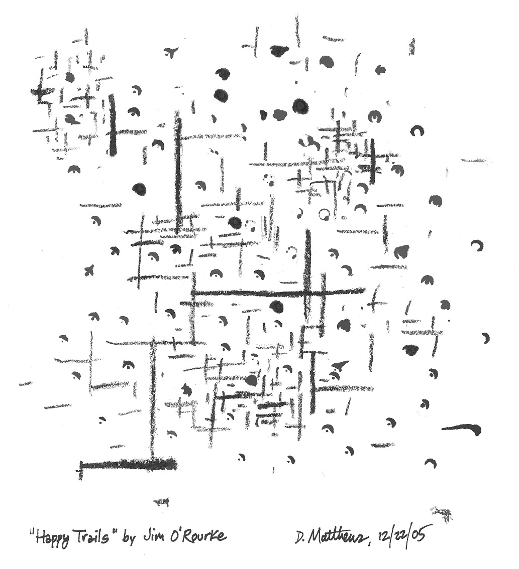 “Happy Trails” by Jim O’Rourke “Happy Trails” by Jim O’Rourke, December 22, 2005. Acrylic and lithographic crayon on paper, 11″ x 14″. Share this: Click to share on X (Opens in new window) X Click to share on Facebook (Opens in new window) Facebook Like Loading...