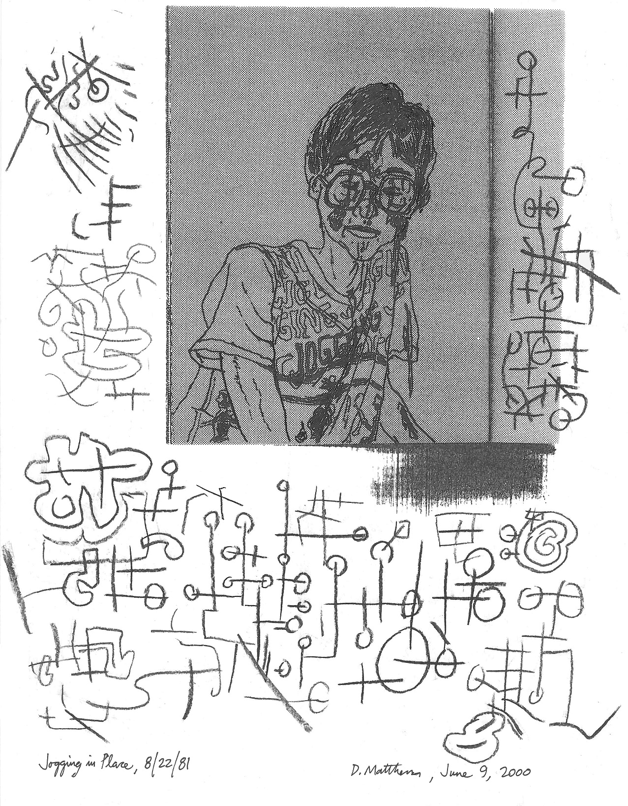 Jogging in Place, 8/22/81 Jogging in Place, 8/22/81, June 9, 2000. Ink and lithographic crayon on photocopy, 8.5″ x 11″. Share this: Click to share on X (Opens in new window) X Click to share on Facebook (Opens in new window) Facebook Like Loading...
