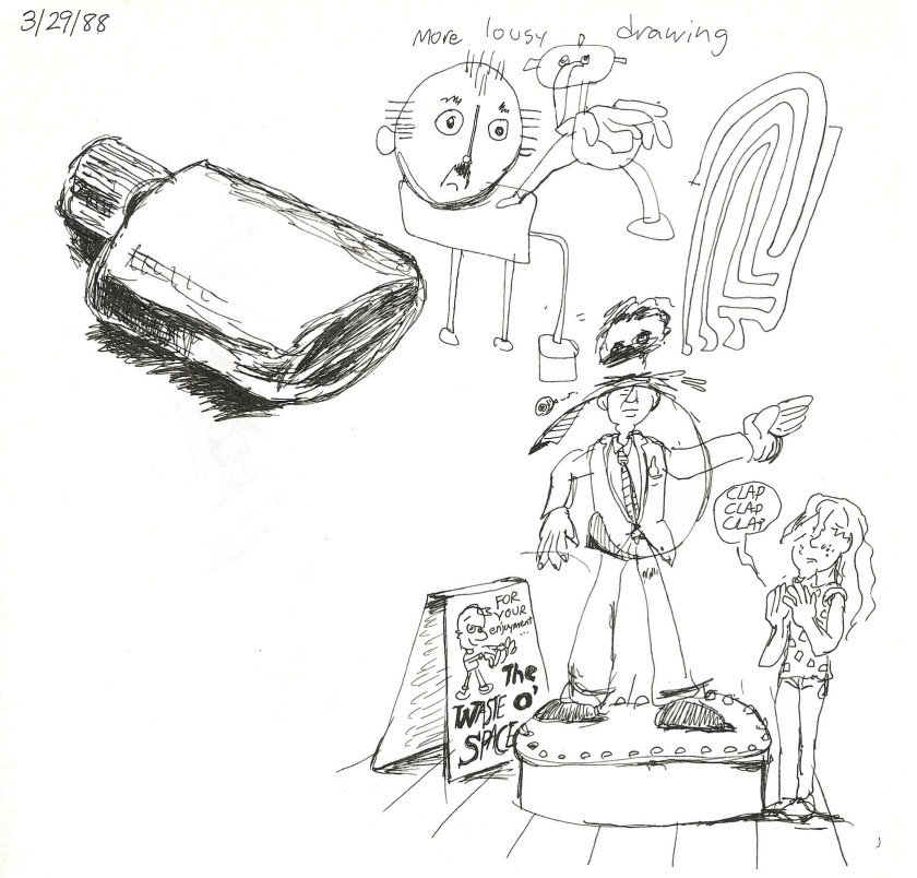 More Lousy Drawing More Lousy Drawing, March 29, 1988. Ink on paper, 8.5″ x 11″. Share this: Click to share on X (Opens in new window) X Click to share on Facebook (Opens in new window) Facebook Like Loading...