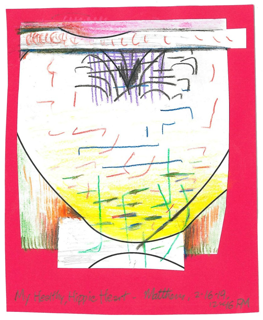 My Healthy, Hippie Heart My Healthy, Hippie Heart, February 16, 2019. Pencil and collage on paper, 5.5″ x 6.75″. I made this at the Westmoreland Museum of American Art, Greensburg, PA. Share this: Click to share on X (Opens in new window) X Click to share on Facebook (Opens in new window) Facebook Like Loading...