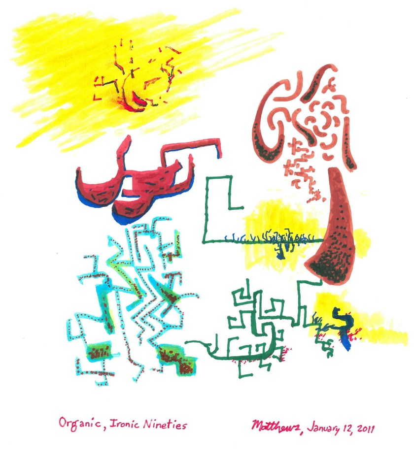 Organic, Ironic Nineties Organic, Ironic Nineties, January 12, 2011. Marker on paper, 11″ x 14″. Share this: Share on X (Opens in new window) X Share on Facebook (Opens in new window) Facebook Like Loading...