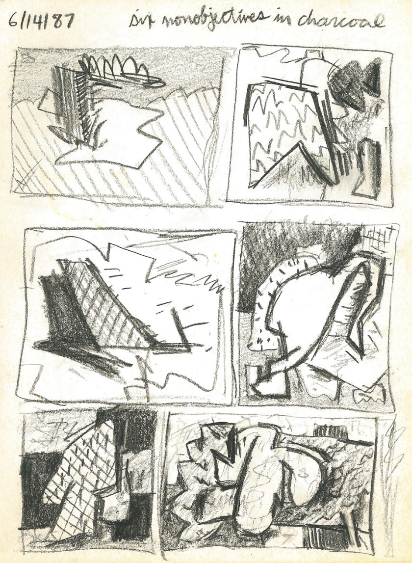 Six Nonobjectives in Charcoal (Unretouched Version) Six Nonobjectives in Charcoal (Unretouched Version), June 14, 1987. Charcoal on paper, 8.5″ x 11″. Share this: Click to share on X (Opens in new window) X Click to share on Facebook (Opens in new window) Facebook Like Loading...