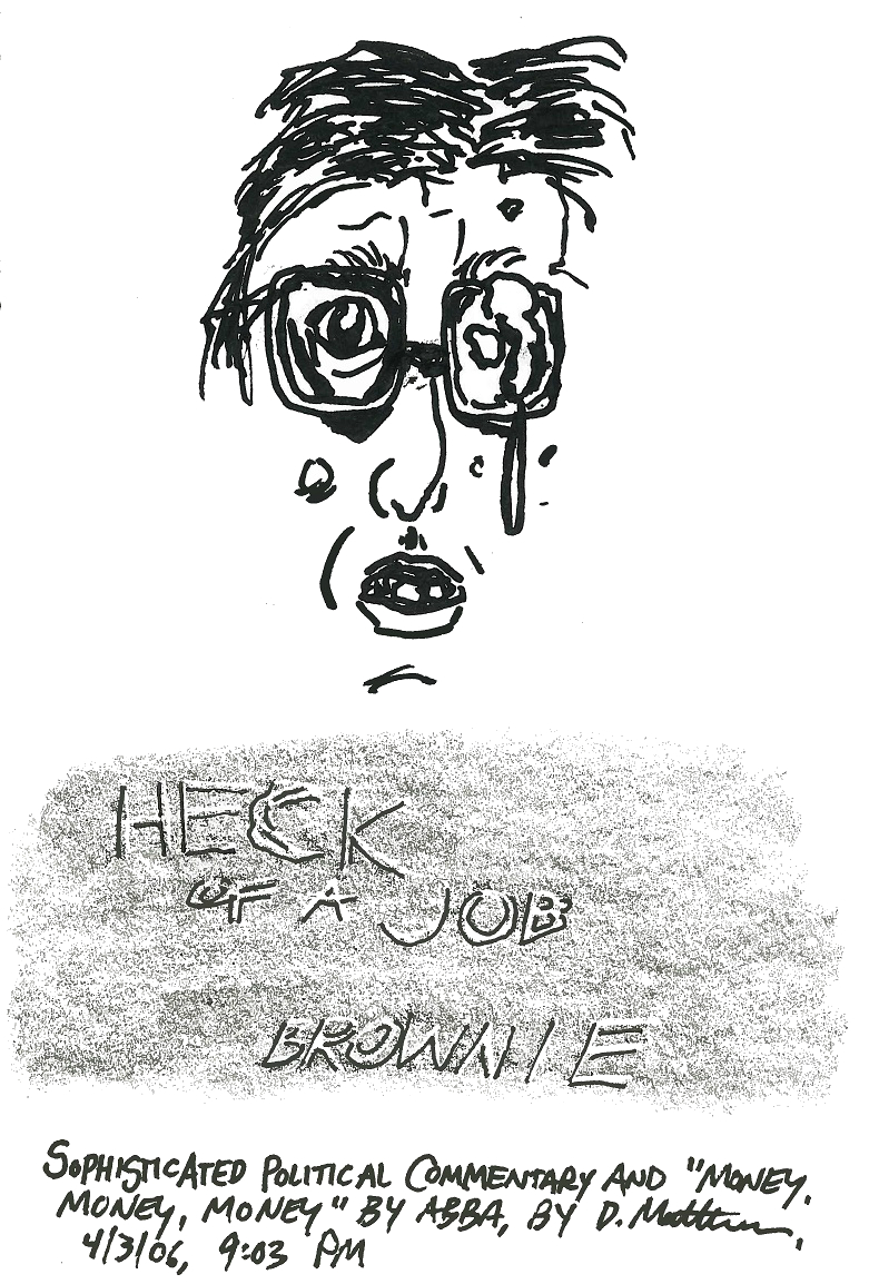 Sophisticated Political Commentary and “Money, Money, Money” by ABBA, April 3, 2006. Ink and lithographic crayon on paper, 5.5″ x 8.5″.