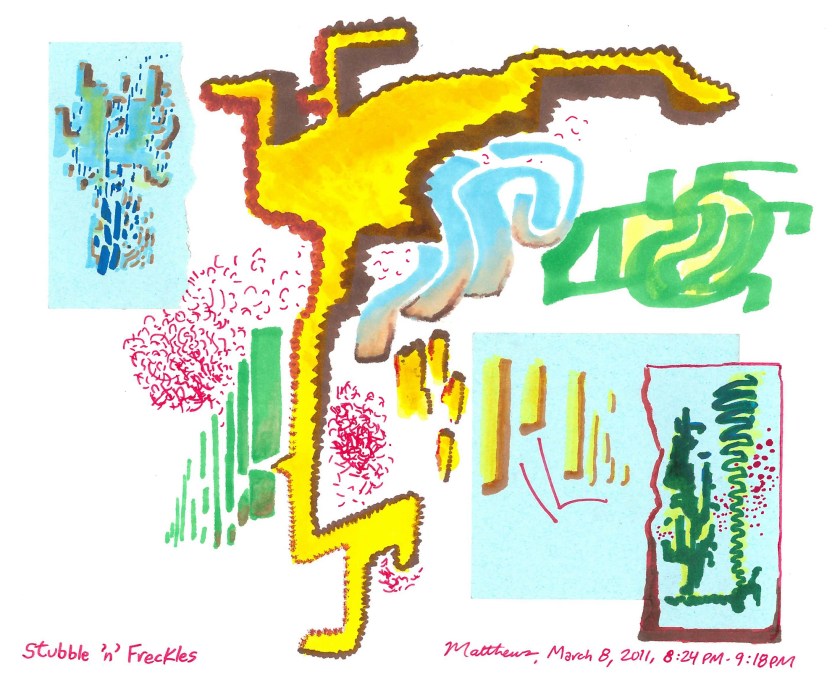 Stubble ‘n’ Freckles Stubble ‘n’ Freckles, March 8, 2011. Marker and collage on paper, 14″ x 11″. Share this: Click to share on X (Opens in new window) X Click to share on Facebook (Opens in new window) Facebook Like Loading...