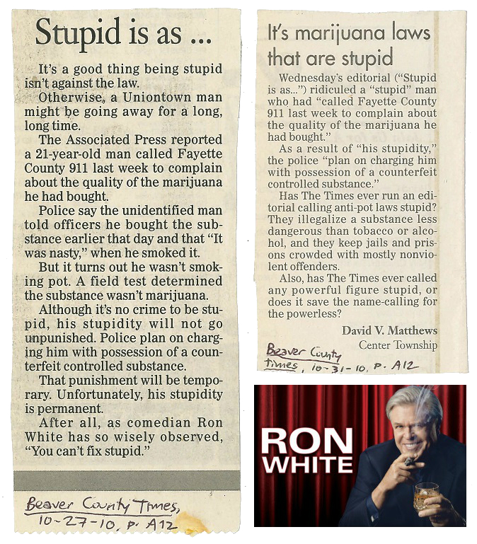 Stupid Is As… Clippings from the Beaver County Times. Left: October 27, 2010, p. A12. Right: October 31, 2010, p. A12. Share this: Click to share on X (Opens in new window) X Click to share on Facebook (Opens in new window) Facebook Like Loading...