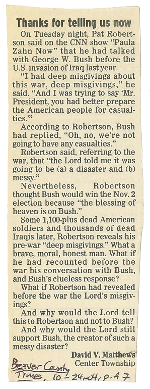 Thanks for Telling Us Now From the Beaver County Times, October 24, 2004, p. A7. Share this: Click to share on X (Opens in new window) X Click to share on Facebook (Opens in new window) Facebook Like Loading...