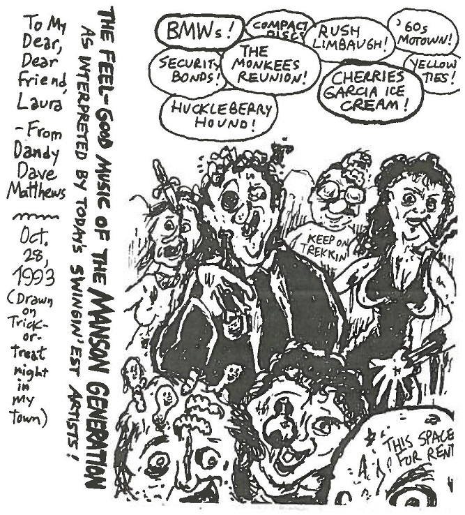 The Feel-Good Music of the Manson Generation The Feel-Good Music of the Manson Generation as Interpreted by Today’s Swingin’est Artists!, October 28, 1993. Ink on paper, 3.5″ x 4″. Share this: Click to share on X (Opens in new window) X Click to share on Facebook (Opens in new window) Facebook Like Loading...