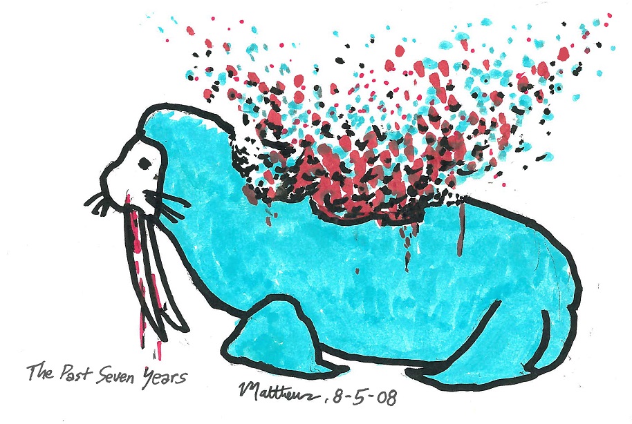The Past Seven Years The Past Seven Years, August 5, 2008. Acrylic and marker on paper, 5″ x 7″. Share this: Click to share on X (Opens in new window) X Click to share on Facebook (Opens in new window) Facebook Like Loading...