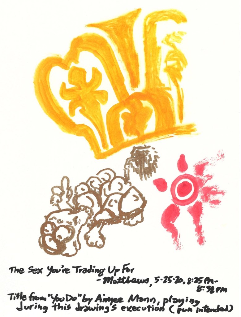 The Sex You’re Trading up For The Sex You’re Trading up For, May 25, 2020. Marker on paper, 8.5″ x 11″. Share this: Click to share on X (Opens in new window) X Click to share on Facebook (Opens in new window) Facebook Like Loading...
