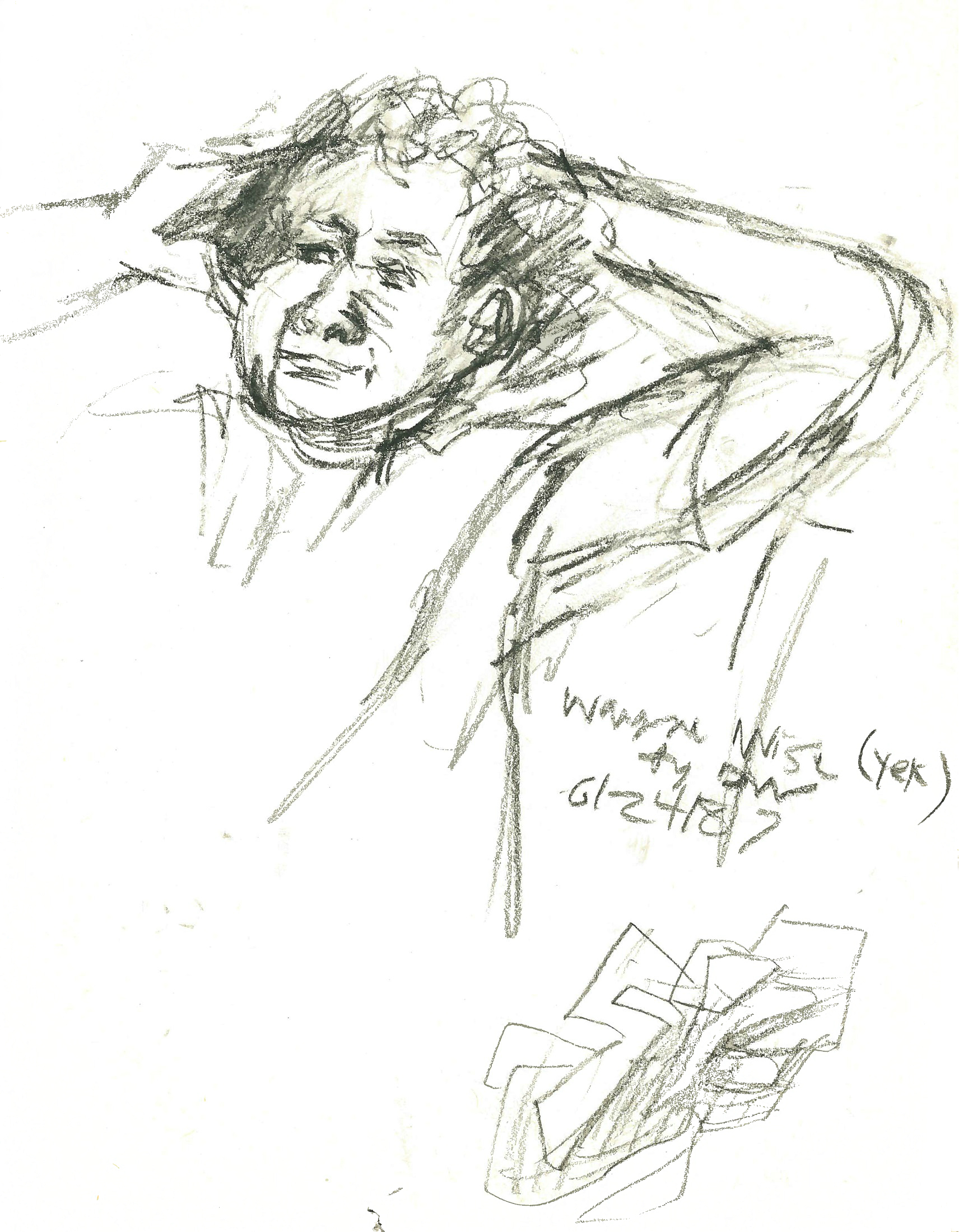 Wayne Wise (Yek) by DM, June 24, 1987. Charcoal on paper, 8.5″ x 11″. The “yek” refers not to the future Aspie Seeks Love talking head, but to what I (erroneously) perceived as this drawing’s less-than-excellent quality.–DVM, January 24, 2019, 11:48 AM EST