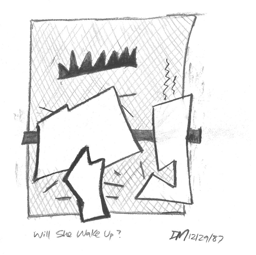 Will She Wake Up? Will She Wake Up?, December 29, 1987. Charcoal and Conté crayon on paper, 10.5″ x 14″. Share this: Share on X (Opens in new window) X Share on Facebook (Opens in new window) Facebook Like Loading...