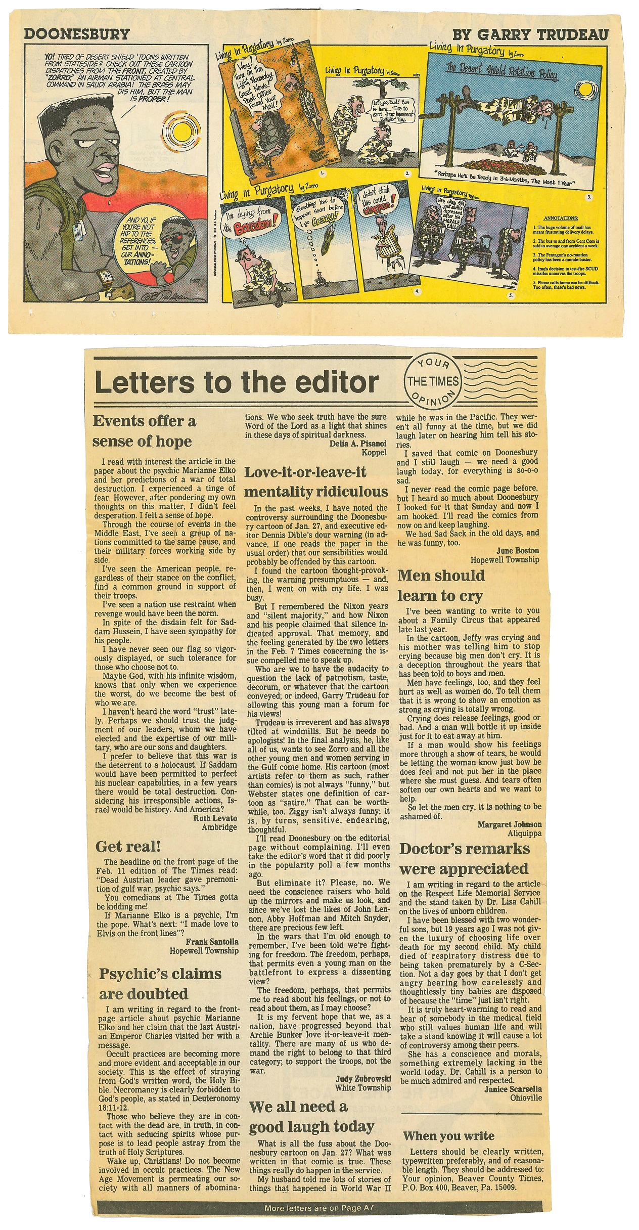 Zorro, Elko, and Jeffy All from the Beaver County Times. Top: January 27, 1991, p. 2 of comics section. Bottom: February ??, 1991, p. A6. Share this: Share on X (Opens in new window) X Share on Facebook (Opens in new window) Facebook Like Loading...